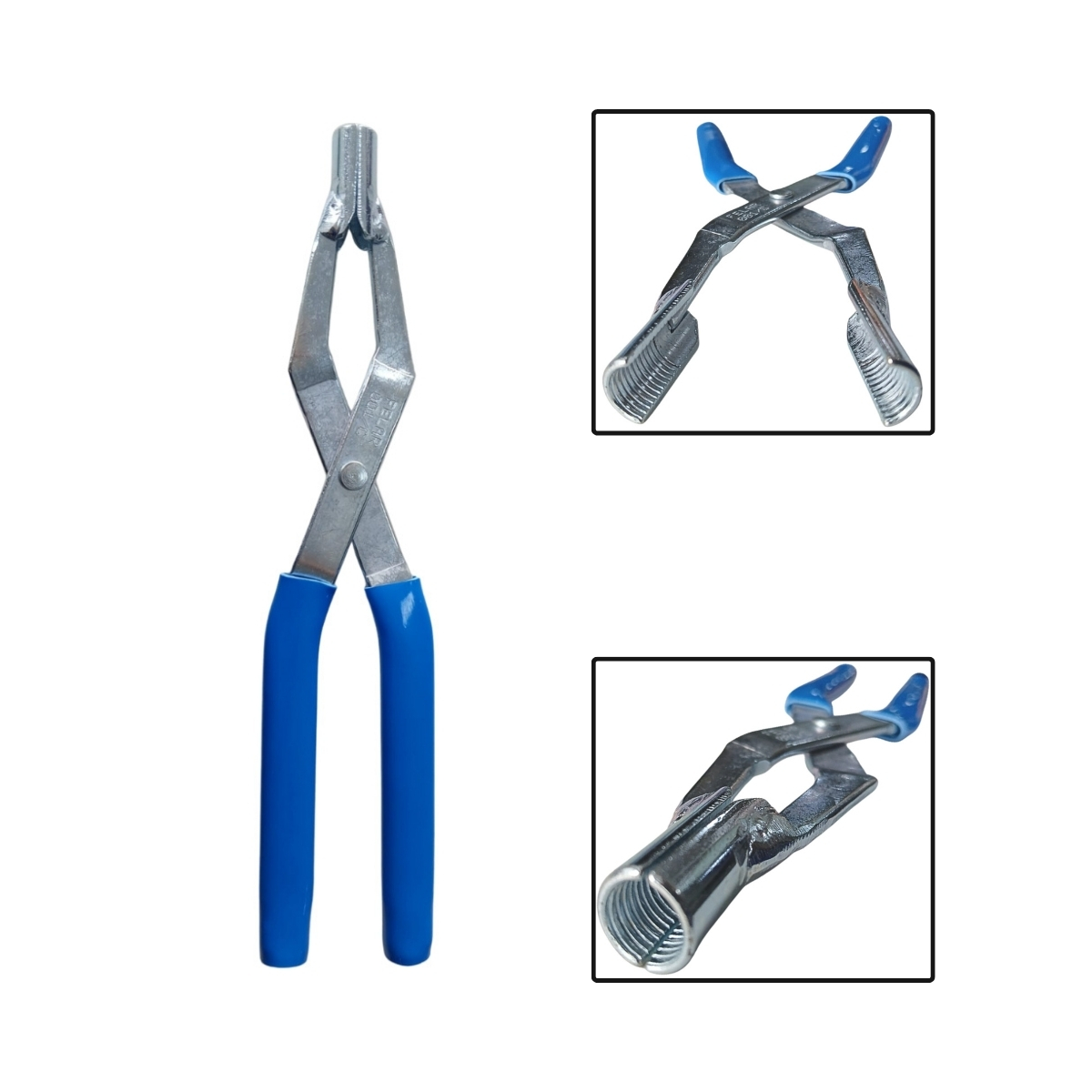 O alicate para retirar retentores das guias de válvulas foi desenvolvido para facilitar a remoção dos retentores sem danificar a guia ou a haste da válvula durante serviços de manutenção no cabeçote. Seu formato específico permite agarrar o retentor com firmeza, proporcionando maior controle e precisão no momento da extração.