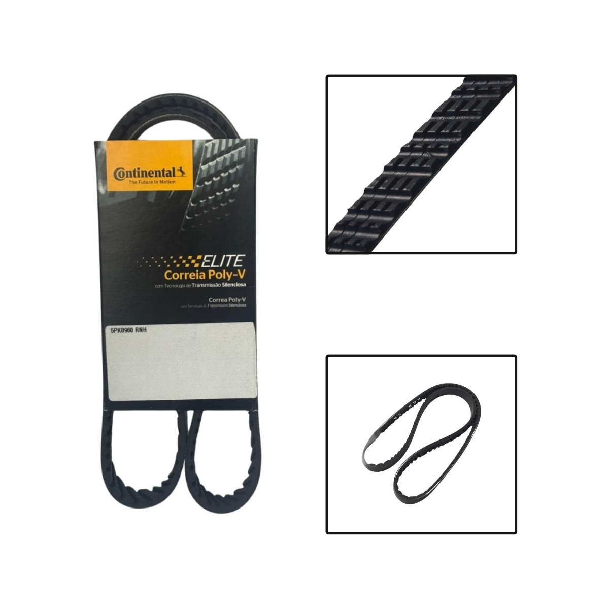 Fabricada em borracha de alta resistência com reforço interno, oferece excelente durabilidade, funcionamento silencioso e transmissão eficiente da força, assegurando desempenho confiável e maior vida útil dos componentes do motor.