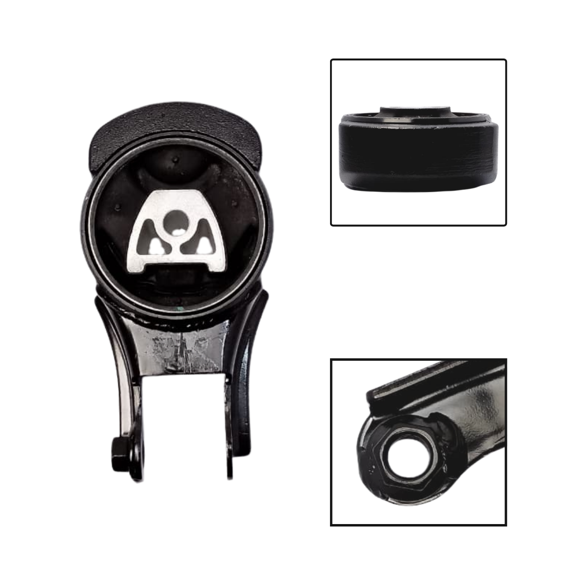 O coxim inferior traseiro do motor é responsável por limitar o movimento do conjunto motriz em acelerações e retomadas, além de absorver vibrações transmitidas à carroceria. Quando desgastado, provoca trancos ao arrancar, batidas secas em trocas de marcha e desalinhamento do conjunto motor/câmbio.