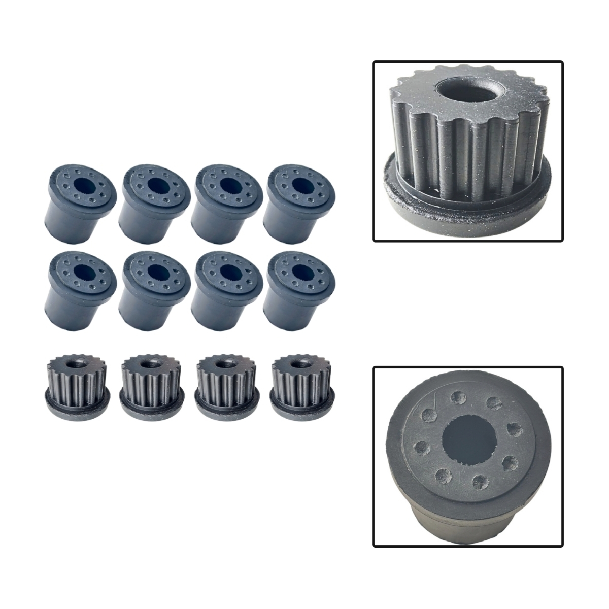 O kit de buchas do feixe de mola é responsável por absorver impactos e manter o correto alinhamento do eixo traseiro, garantindo estabilidade, conforto e segurança ao veículo, mesmo sob carga.