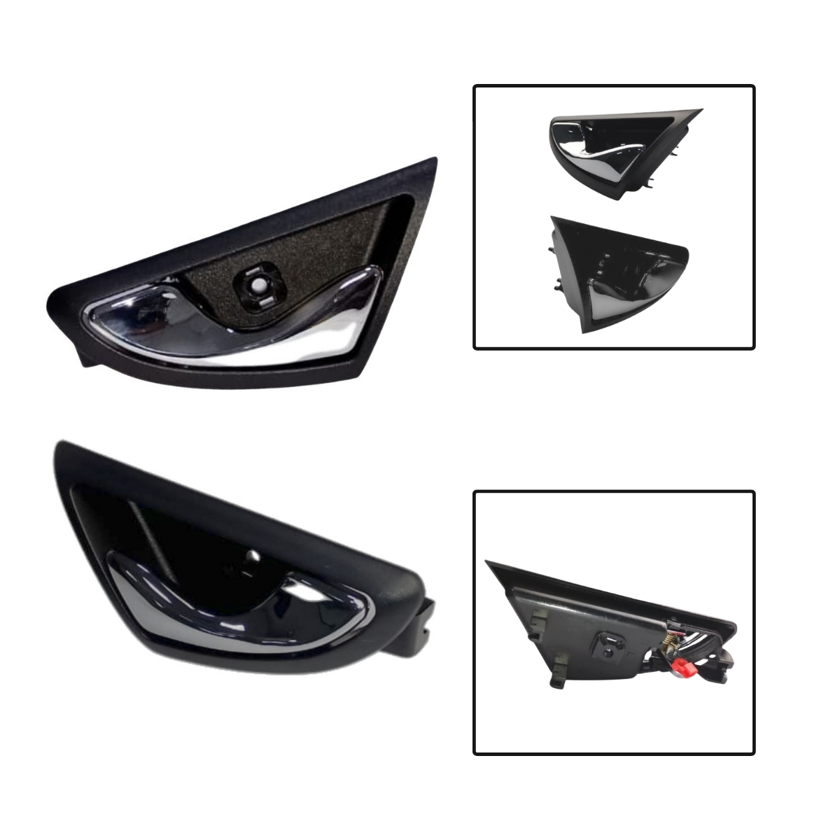 O kit par de maçanetas internas dianteiras é responsável pela abertura e fechamento das portas pelo interior, garantindo praticidade, segurança e padronização estética no veículo.