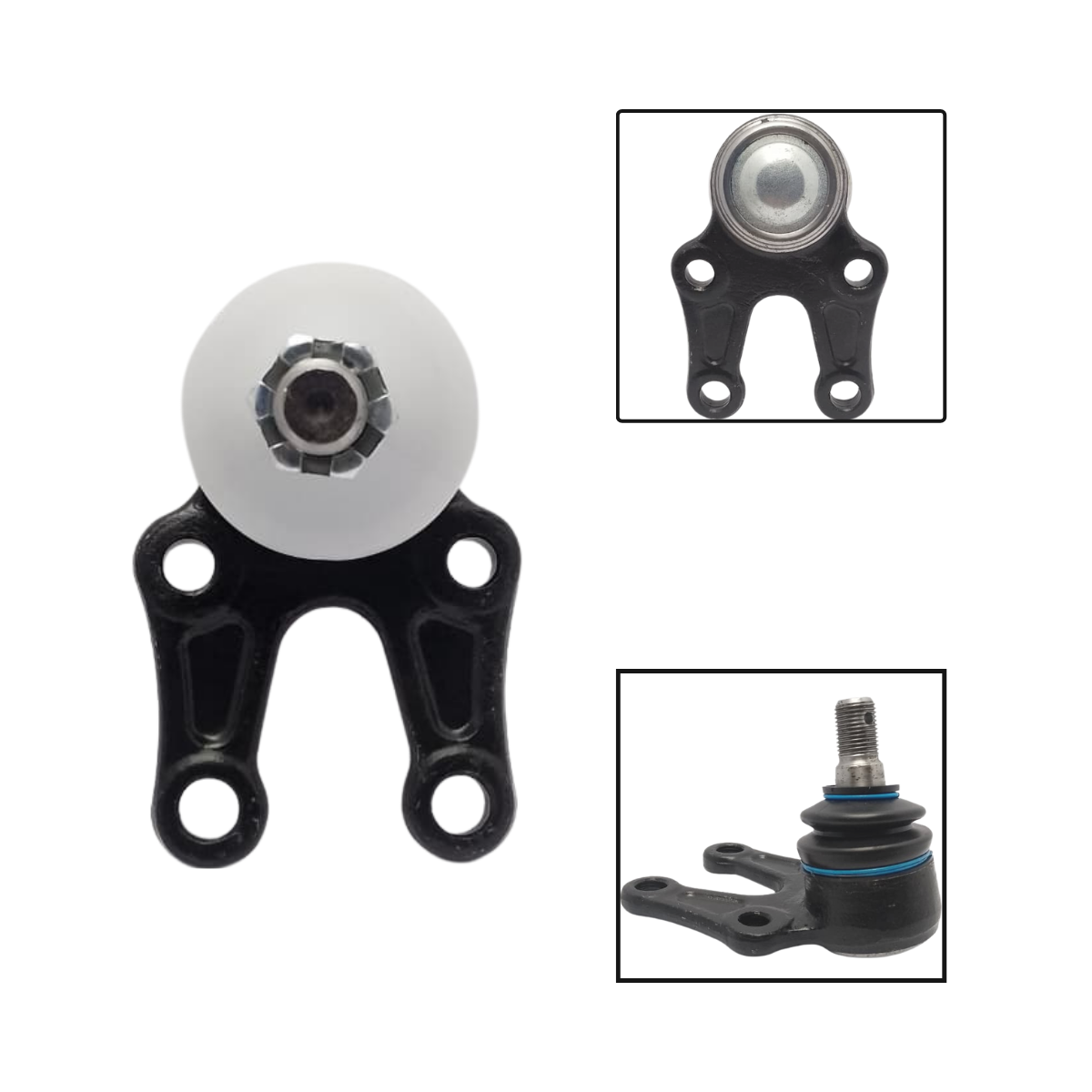 O pivô inferior da bandeja é responsável pela articulação entre a bandeja de suspensão e o conjunto da roda, garantindo controle direcional, estabilidade e segurança mesmo sob carga e uso intenso.